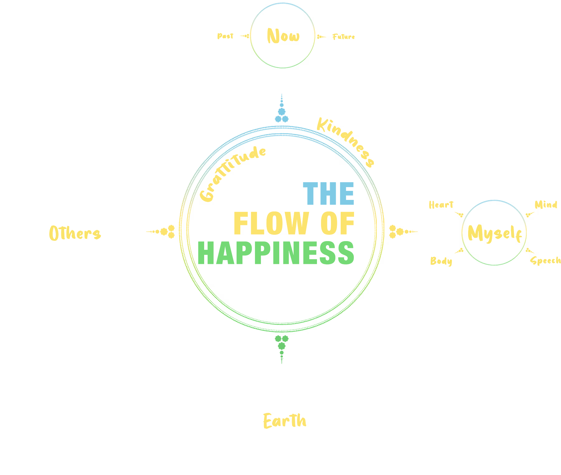 All we’ve done is draw a simple map. A place to start: Here and Now, with Myself, with the Earth, and with Others. From there it deepens. Around the Now, the past and future appear—full of things to be grateful for, and full of moments where we can choose kindness.